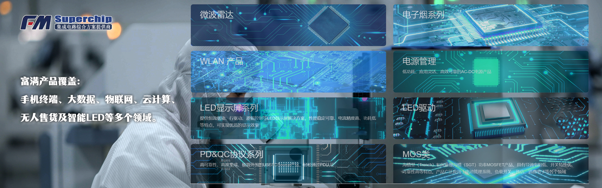 产品方向:电源管理IC、微波雷达、LED显示屏、LED驱动、MOS类、5G射频系列、WLAN产品等。